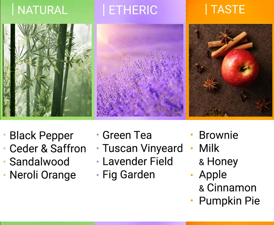 Schaffen Sie eine magische Atmosphäre dank der individuellen Duftauswahl Dank der fortschrittlichen Technologie und der hochwertigen Duftöle können Sie sicher sein, dass Ihr Kunde das bezaubernde Aroma während der gesamten Lebensdauer der Kerze genießen wird. |