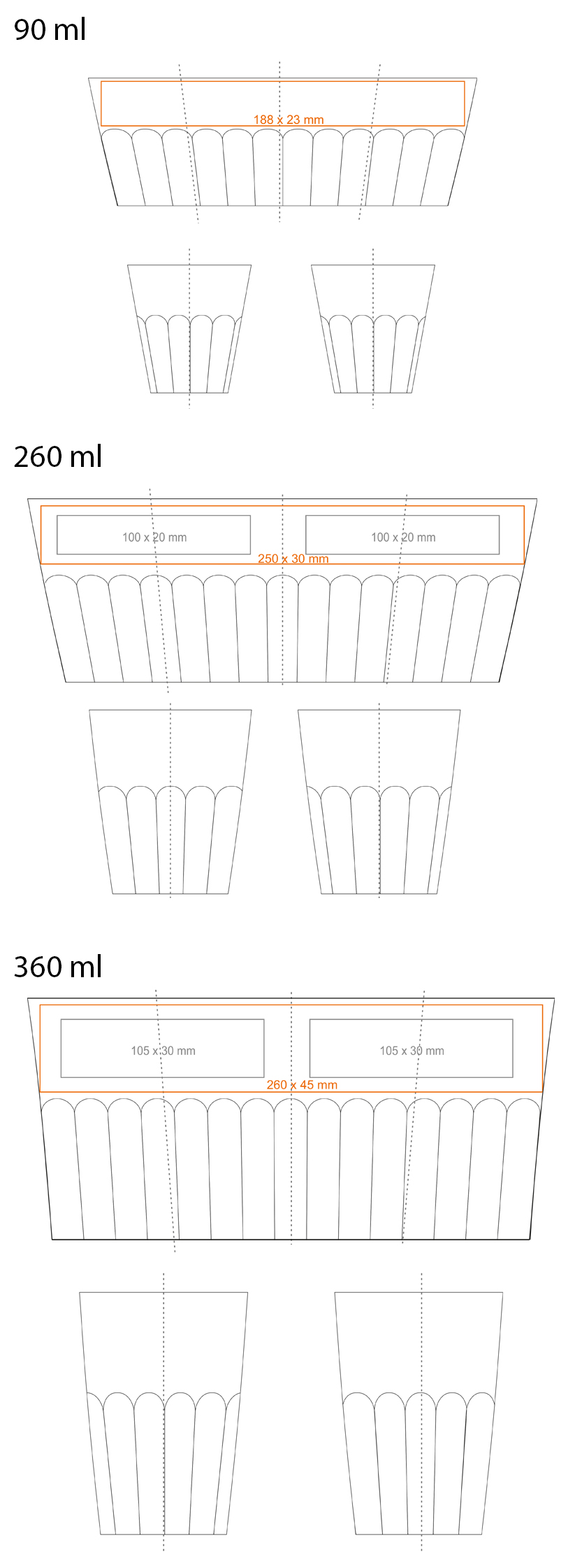 Zur Verfügung stehende Drucktechniken für NOBLE: *  (90 / 260 / 360 ml)