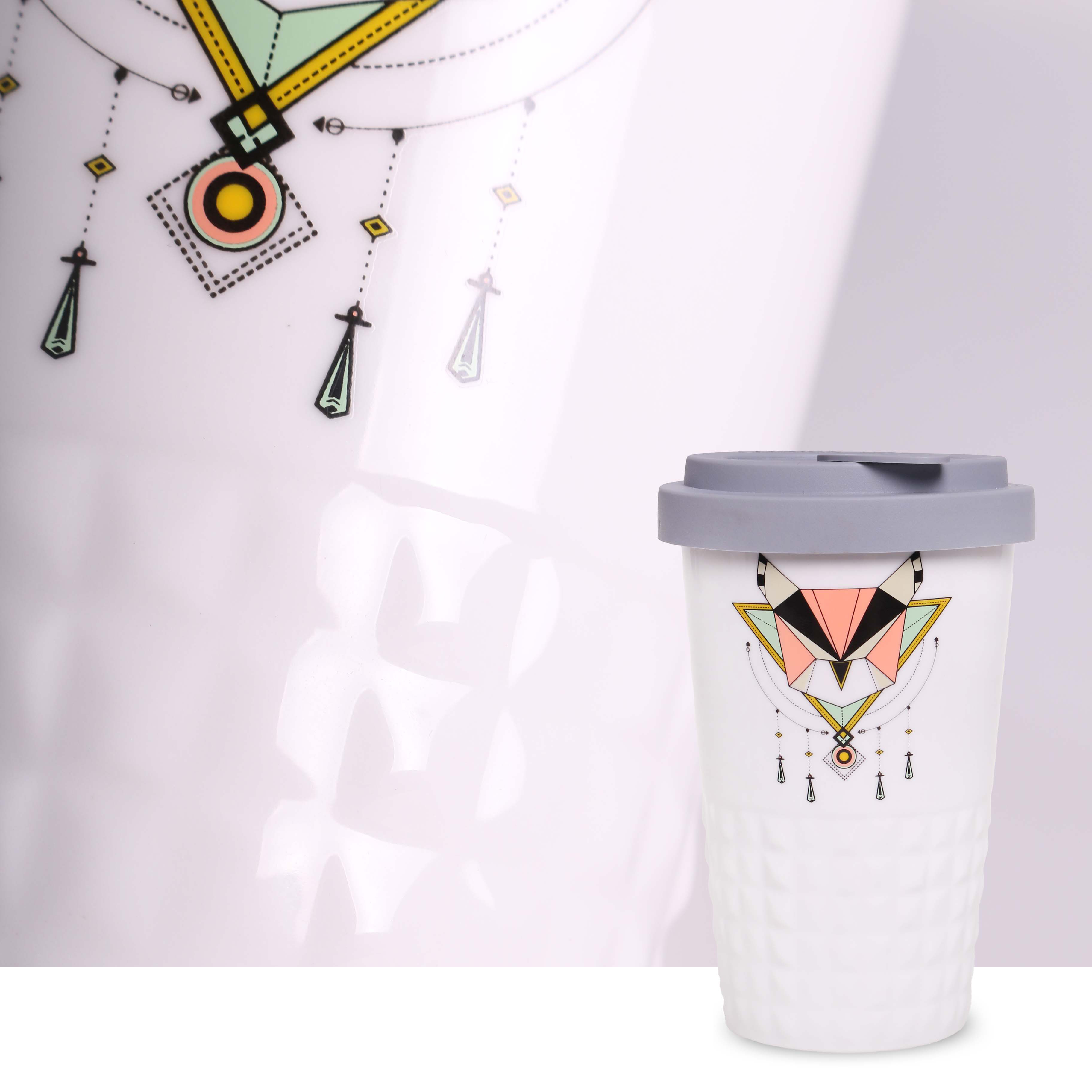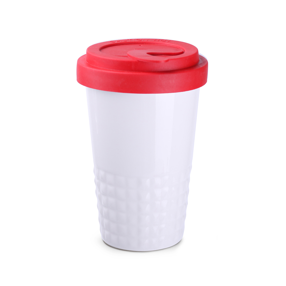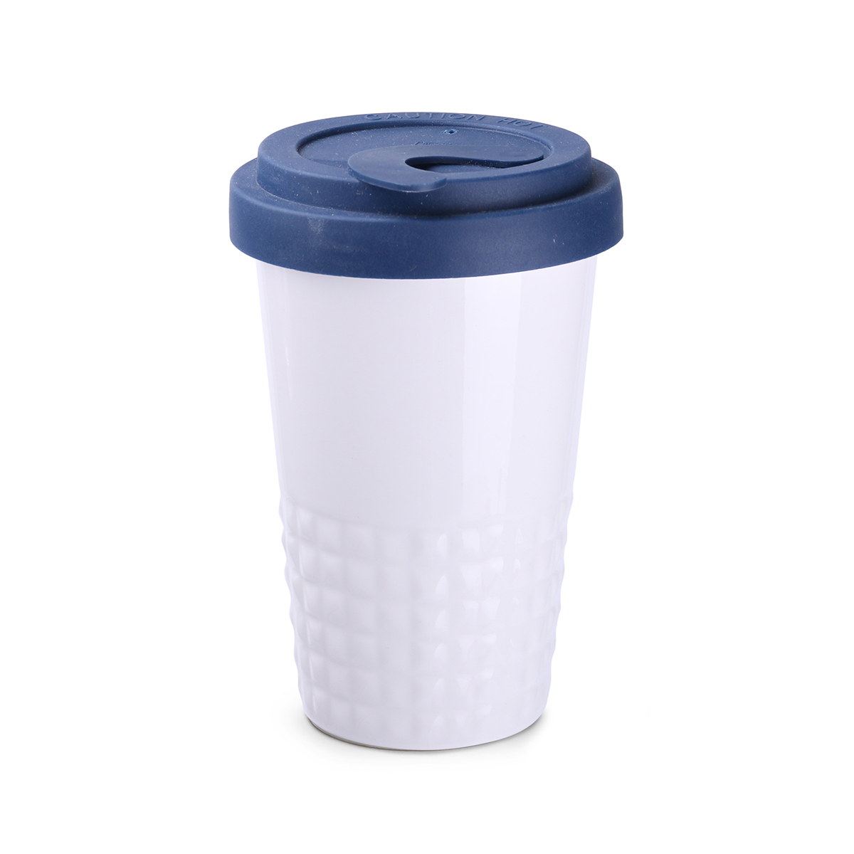Neuheit auf dem Markt für Werbekeramik. Dezente Ausführung des unteren Tassenbereichs in Form symmetrischer Erhebungen. Doppelwandige Porzellantasse mit hervorragender Wärmeisolierung. Besonders dicht schließender Deckel. Modell für aktive Nutzer. Der Deckel ist in folgenden Farben erhältlich: Weiß, Orange 021C, Cool Gray 7, Marineblau 294C, Braun 4695C, Schwarz, Rosa 4064C, Blau 2144C, Eukalyptus 5493C, Desert Sand 2310C.