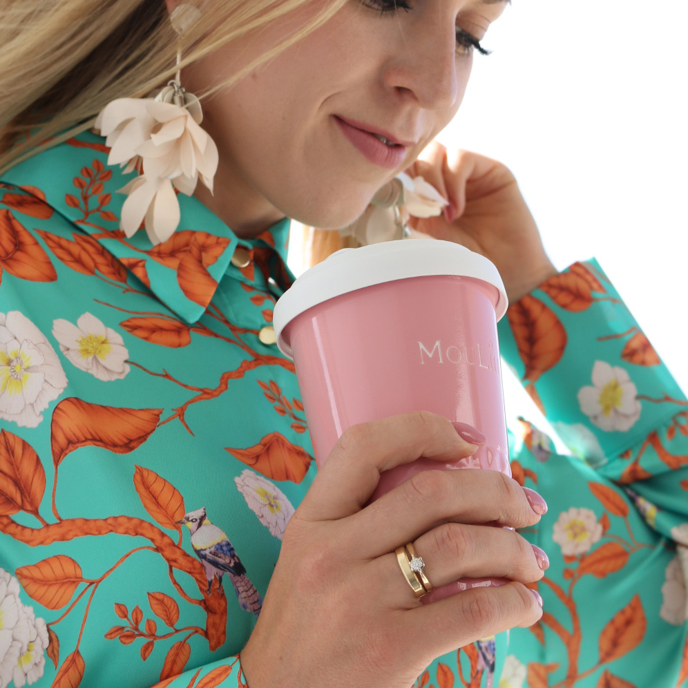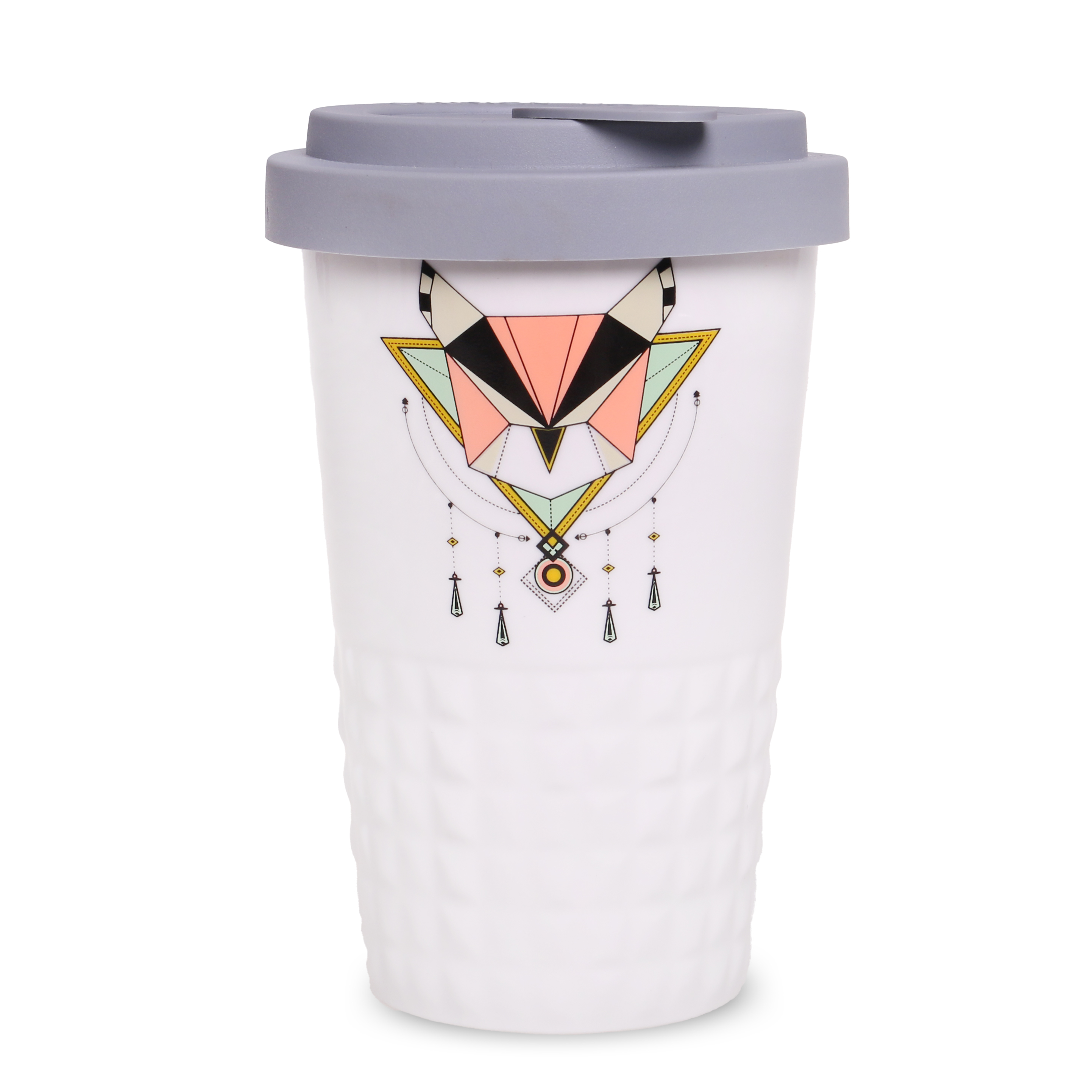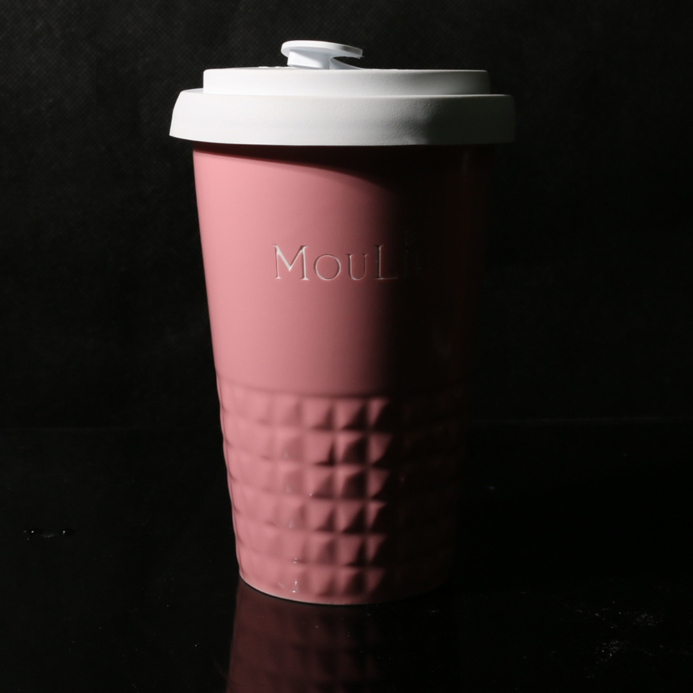 Neuheit auf dem Markt für Werbekeramik. Dezente Ausführung des unteren Tassenbereichs in Form symmetrischer Erhebungen. Doppelwandige Porzellantasse mit hervorragender Wärmeisolierung. Besonders dicht schließender Deckel. Modell für aktive Nutzer. Der Deckel ist in folgenden Farben erhältlich: Weiß, Orange 021C, Cool Gray 7, Marineblau 294C, Braun 4695C, Schwarz, Rosa 4064C, Blau 2144C, Eukalyptus 5493C, Desert Sand 2310C.