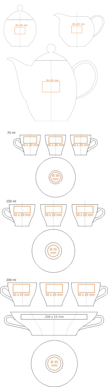 Zur Verfügung stehende Drucktechniken für VENEZIA COFFEE SET: *  ( ml)