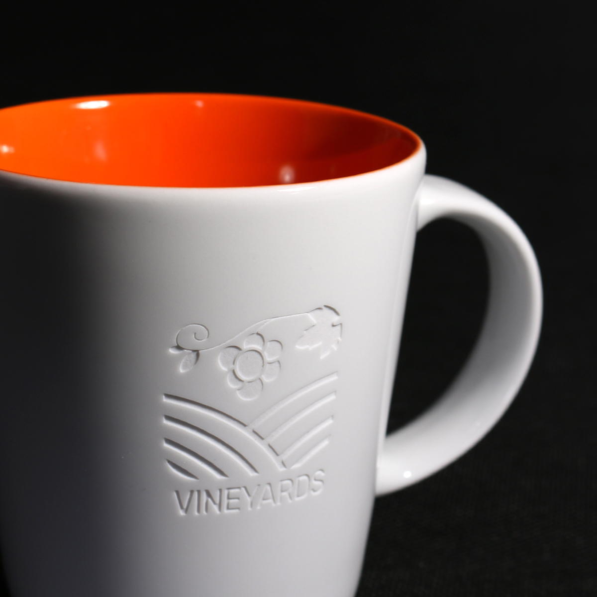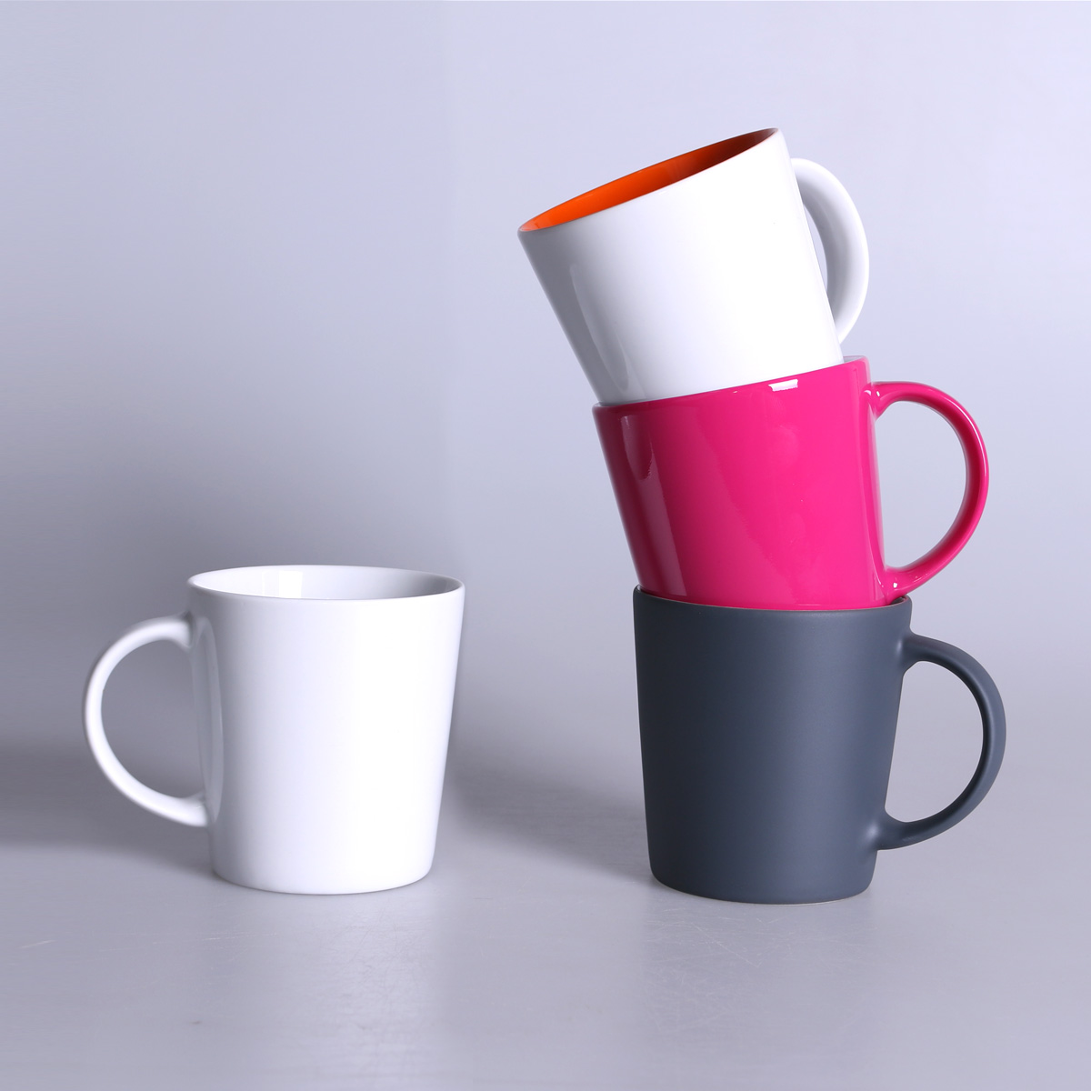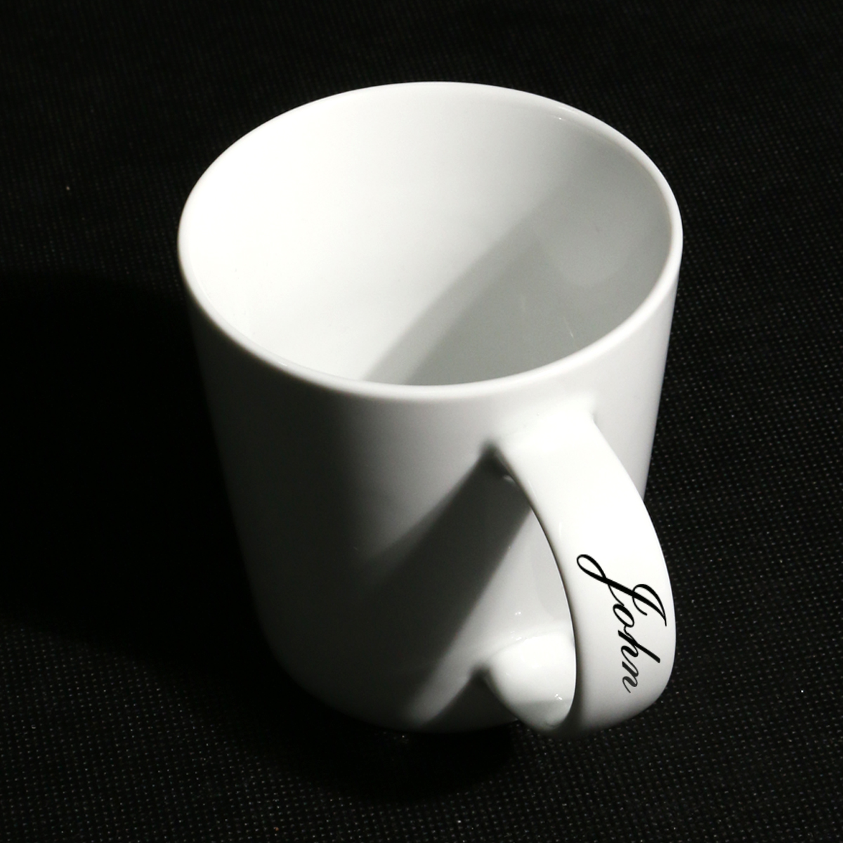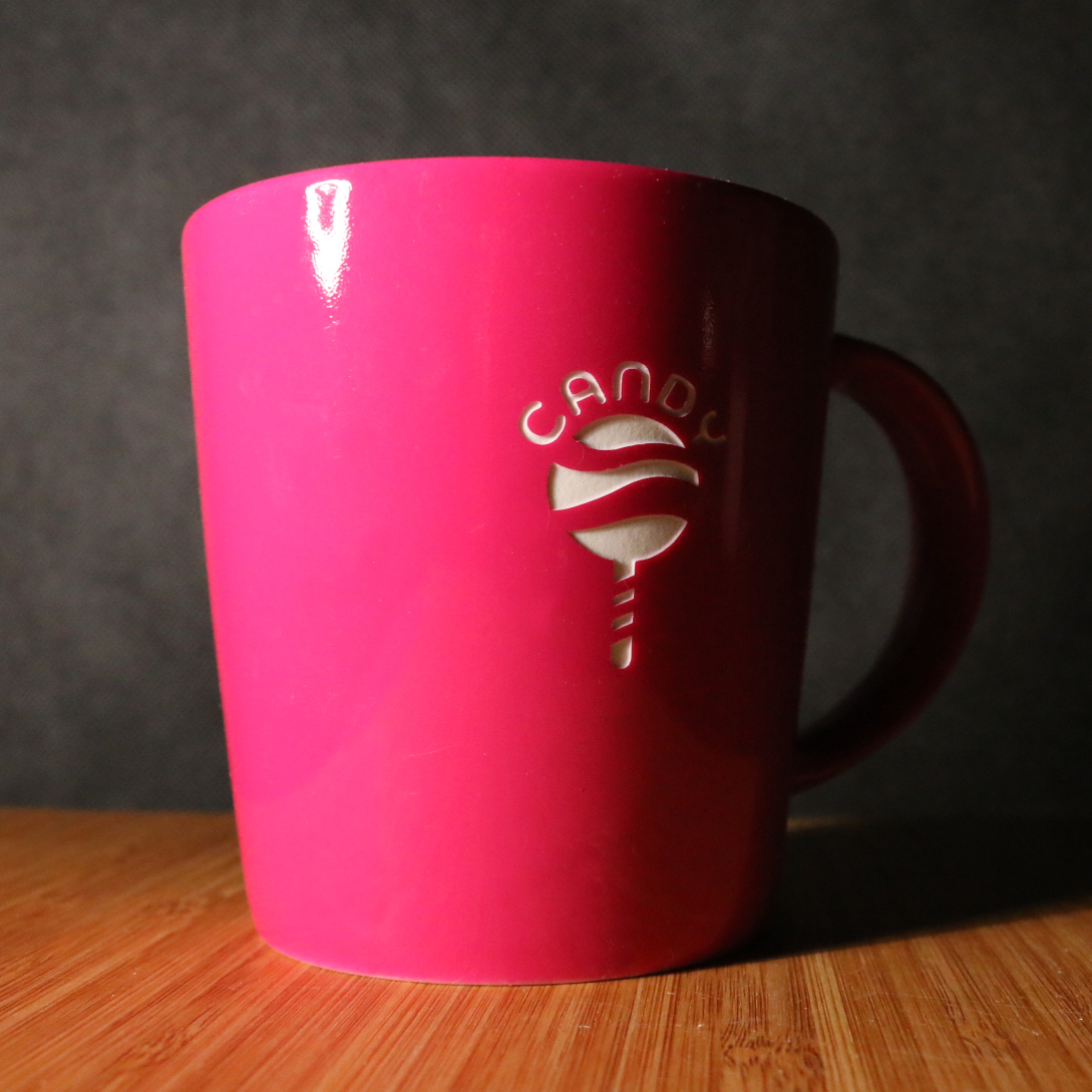 Voluminöser Becher in klassisch-trapezförmigem Design. Der breite Henkel des Bechers bietet stabilen Halt und ermöglicht das Anbringen zusätzlicher Dekorationen. Schlichtheit kombiniert mit Eleganz.