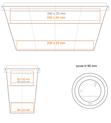 Zur Verfügung stehende Drucktechniken für COFFEE 2 GO LOCK: * (350 ml)