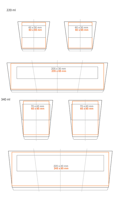 Zur Verfügung stehende Drucktechniken für MEDEA: *  (220 / 340 ml)