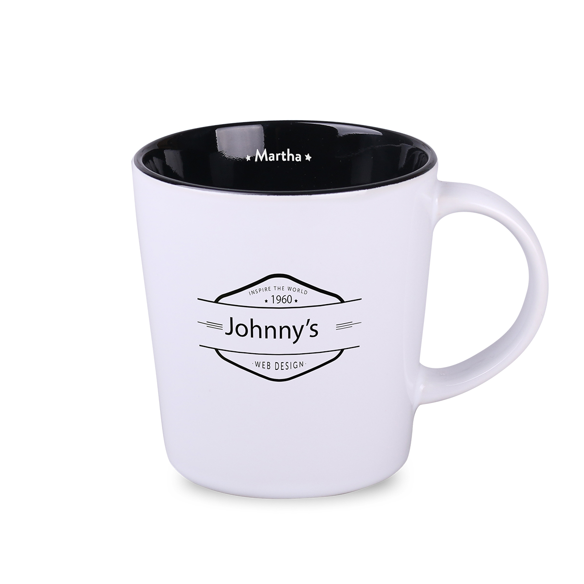 Ein klassischer Becher mit großem Potenzial für individuelle Gestaltung. Er verfügt über ein Innenleben in mehreren trendigen Farbtönen. Seine großen, geraden Seiten präsentieren den Aufdruck perfekt.