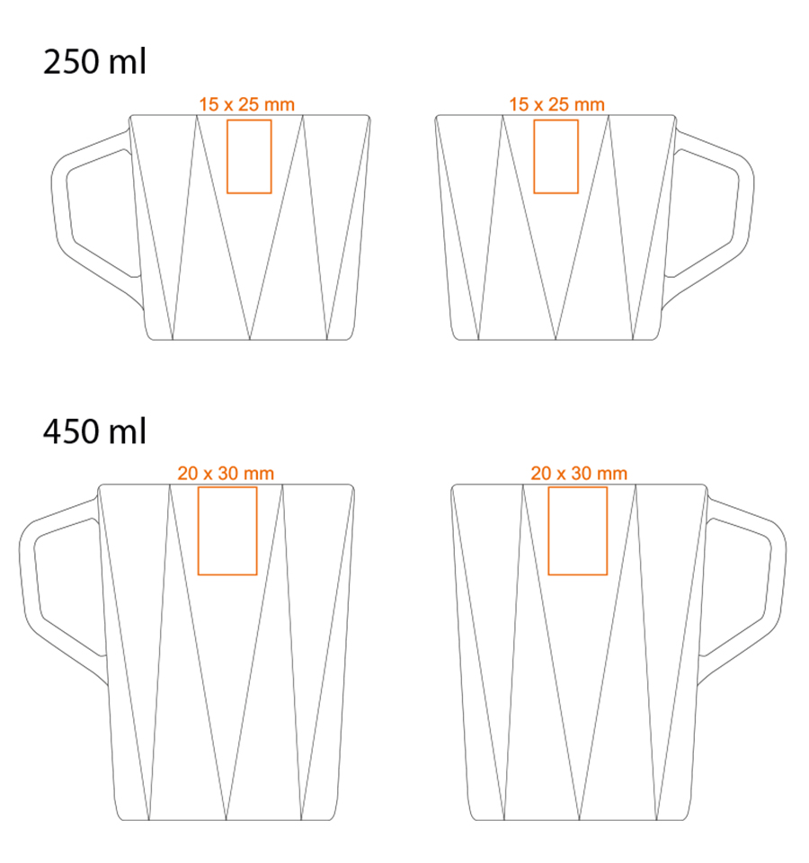 Zur Verfügung stehende Drucktechniken für TIARA: * (250 / 450 ml)