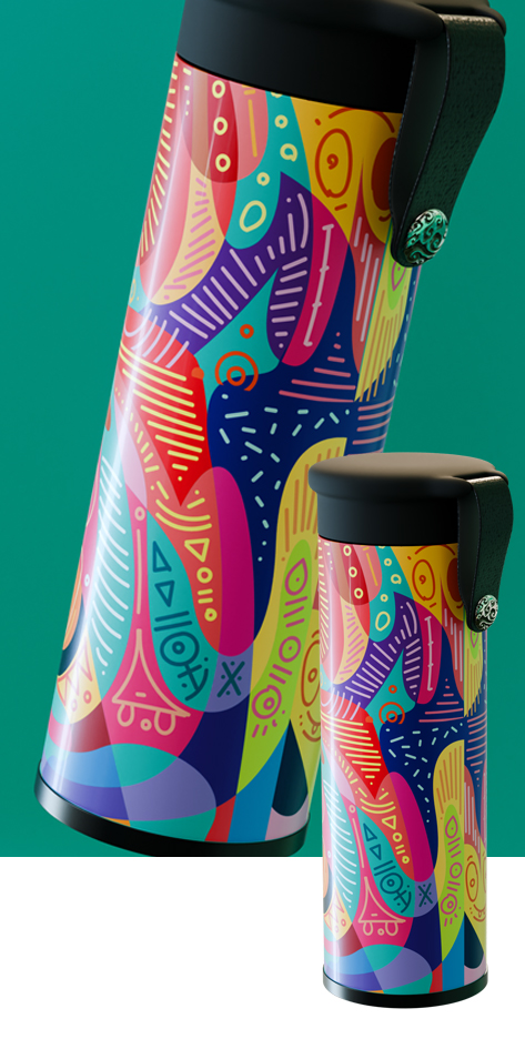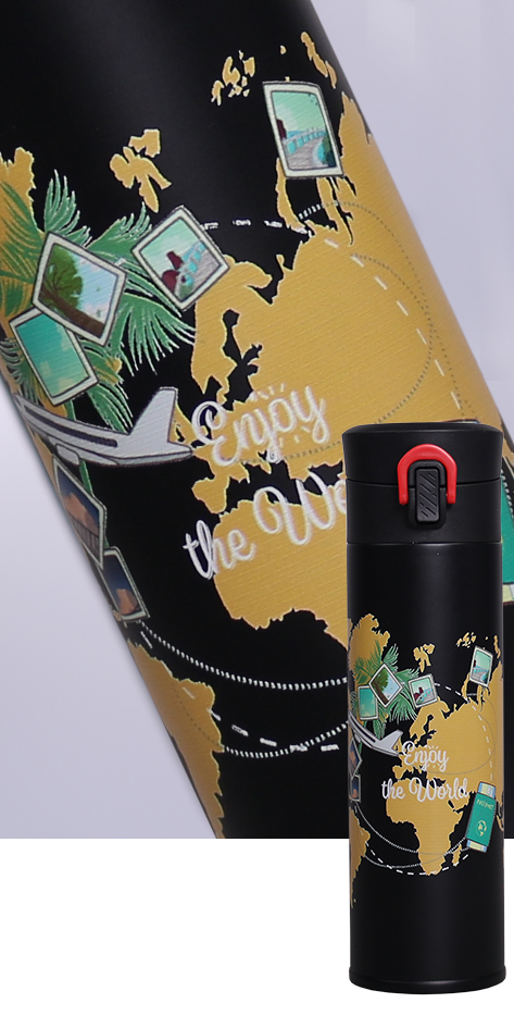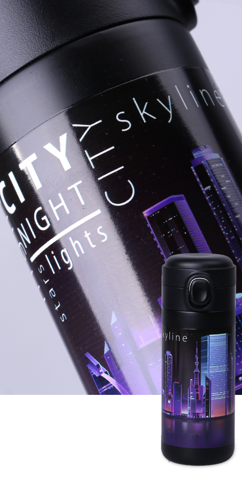 Jetzt können Sie mit einem räumlichen und vollfarbigen 360°-Druck auf der gesamtenOberfläche des Thermobechers beeindrucken! Nutzen Sie unsere innovative Technikder Dekoration.