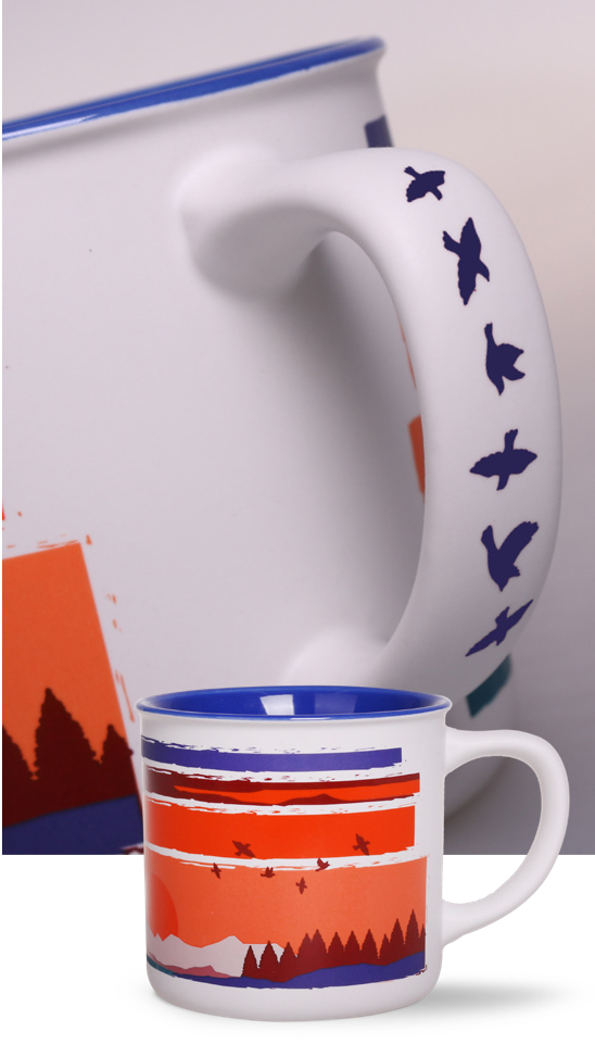 Handmade - Farbauftrag auf dem Becherrand und Prägungen |